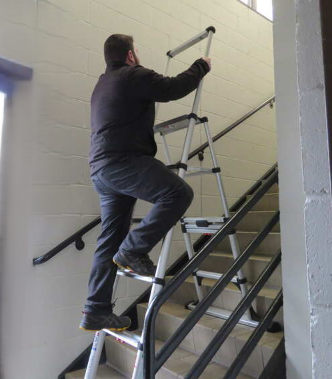 - Stair offset capability levels safely on stairs or uneven ground using the integrated offset block between rear rungs