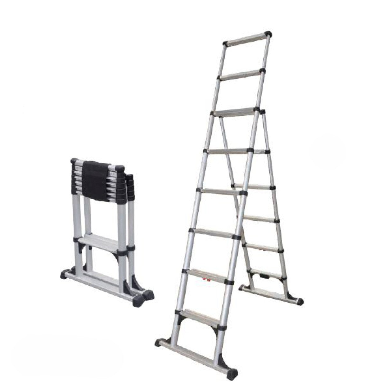 - Dual-use Telescoping design — operates as a freestanding A-frame or a straight ladder when positioned closed